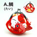 巾着(きんちゃく)・小槌(こづち)・金魚(きんぎょ)・達磨(だるま)